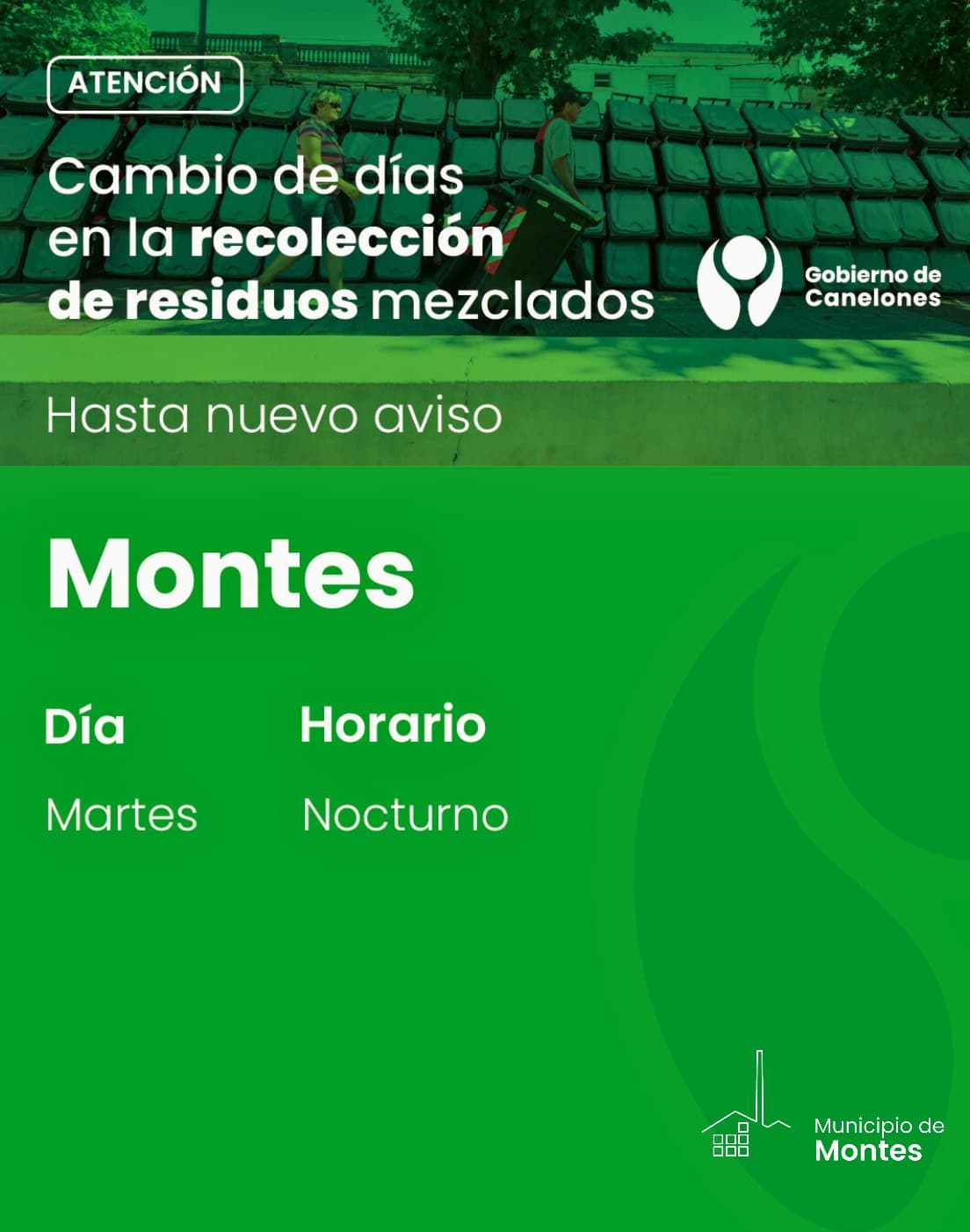 Recolección Residuos Domiciliarios momentáneamente martes horario nocturno La recolección de residuos domiciliarios en Montes, momentáneamente y hasta nuevo aviso, se realizará los días Martes en horario nocturno Galería de imágenes